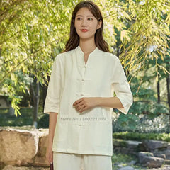 Chinese Traditional Tai Chi Clothing Cotton Linen Breathable Martial Arts Uniforms Summer Kung Fu Taijiquan Morning Sportswear