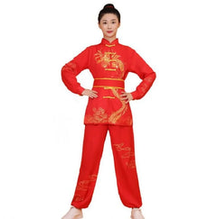 New Chinese Style Men Women Embroidered Dragon Kung Fu Suit Tai chi Wushu Uniform Outdoor Sport Long Sleeve Jacket Pants Sets