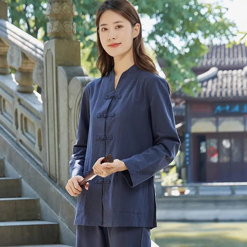 2025 chinese kung fu tai chi clothing martial arts wushu uniform 100% cotton tops+pants set tai chi yoga sports exercise suit